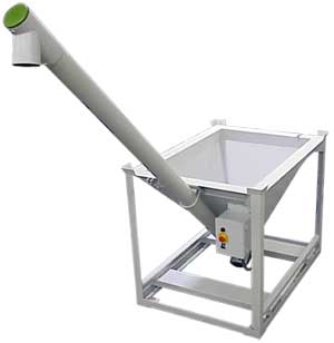 Standard Ground Hopper (with Auger) – Stores and conveys bulk powder materials to the point of insertion or use. Utilizes a solid core auger. Often used in conjunction with a gantry or other material transfer system to store and deliver super sacks or bulk bags to the ground hopper – #1000AGH
