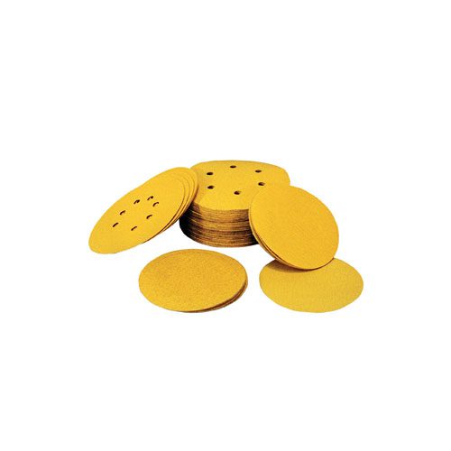 Gold Sandpaper are standard “C” weight paper discs made from aluminum oxide with a non-loading stearate. Like the blue sandpaper, these are ideal for finish sanding on woods, paints, metal, plastic, cultured marble and solid surface. We have Adhesive-Backed, H&L, and hole patterns. These come in grits 20 – 2000.